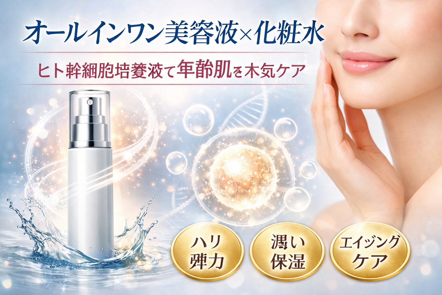 ヒト幹細胞培養液配合のオールインワンは、エイジングケアを意識する世代に特におすすめです。
